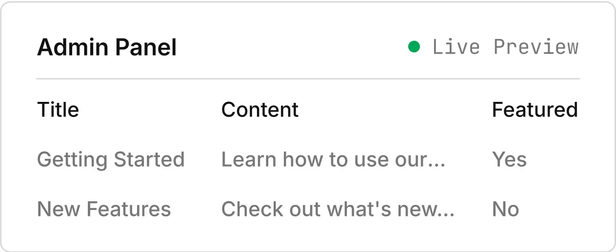 Write once in code. Scalar reflects it in the admin panel immediately.